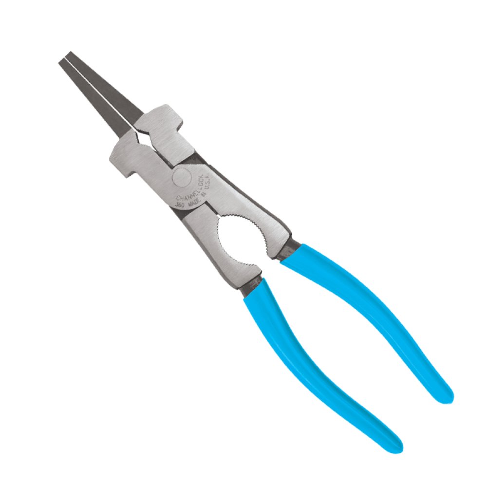 | Designed as ideal 6-in-1 pliers for welders, the Channellock CHL360 9" Welding Pliers offers XLT cutting technology which positions the rivet closer to the cutting edge so considerably less force is required to cut than other high leverage designs. Aggressive crosshatch teeth and precision-machined grooves easily grip and draw out wire and provide superior spatter removal. Added spring makes for ideal one-handed use while 90-degree teeth allow for easy tip installation and removal. | |