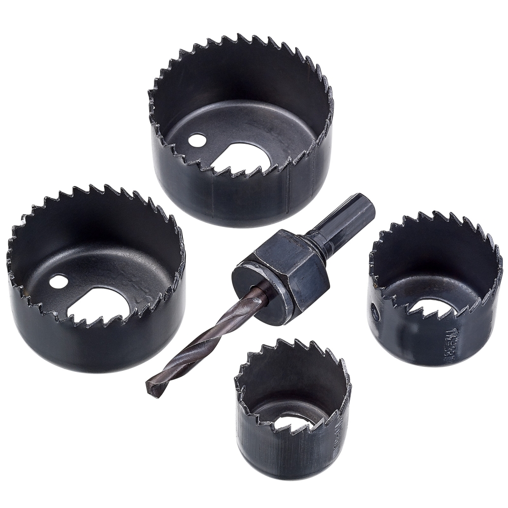 | Contains 4 hole saws with an arbour & pilot drill. The diameter of the hole saws are 32,38,50 & 54mm | |