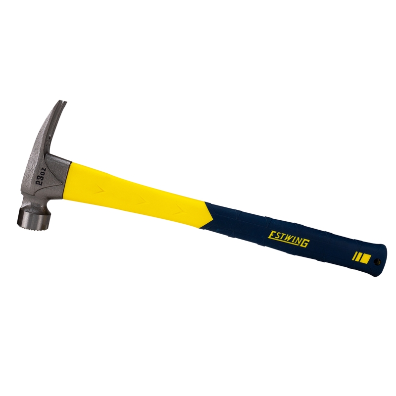 | EstwingÉs sturdy Milled Face Framing Hammer with nail starter in head has a double injection-molded fiberglass handle. This handle makes the hammer lightweight offering a perfectly controlled swing, and the no-slip cushion grip provides a comfortable and strong hold, perfect in all conditions. | |