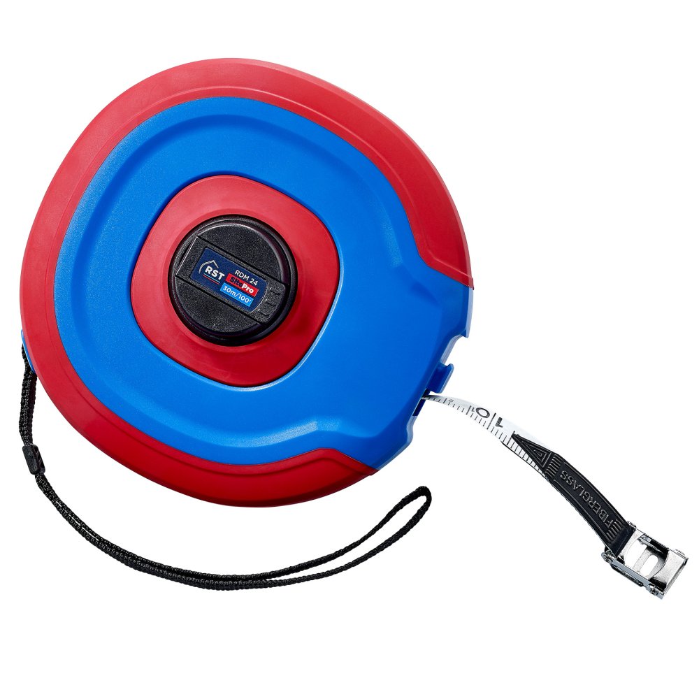 | Manufactured from 42 strand fibreglass. It has 3X geared high speed winding mechanism in an ergonomic case, a metal claw at the end of the tape to allow you to grip into the ground or material for easy and accurate measuring. | |