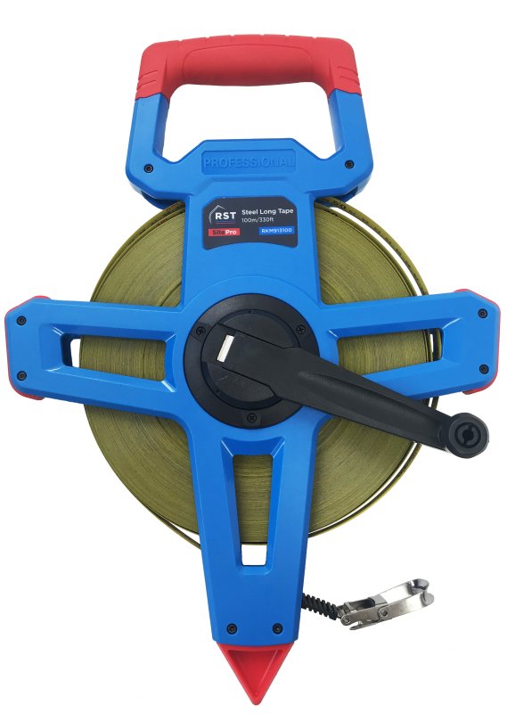 | Manufactured from flexible coated steel. It has 3X geared high speed winding mechanism in an ergonomic case, a metal claw at the end of the tape to allow you to grip into the ground or material for easy and accurate measuring. | |